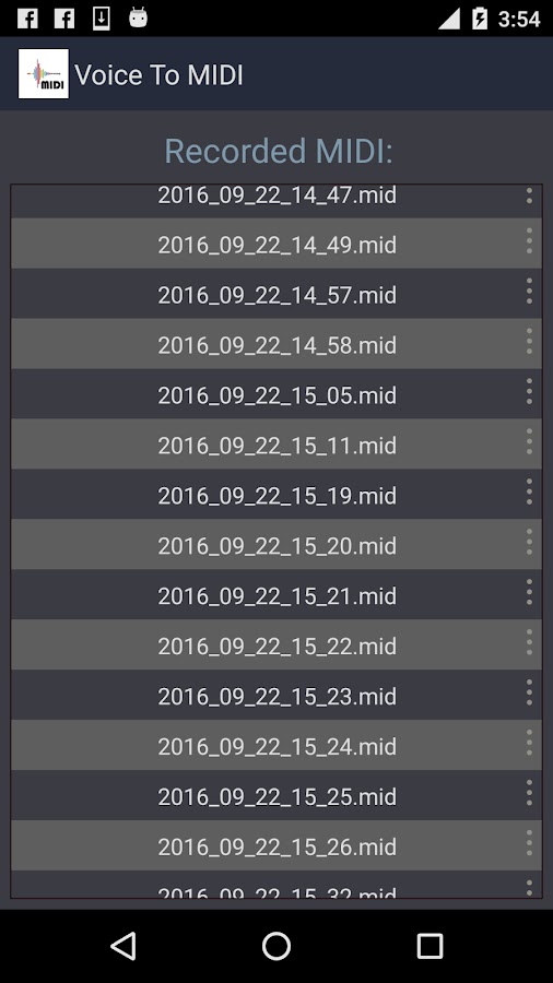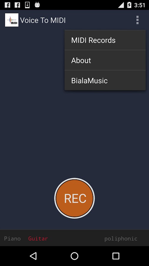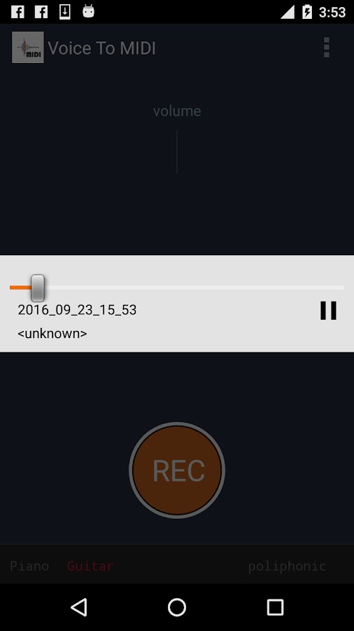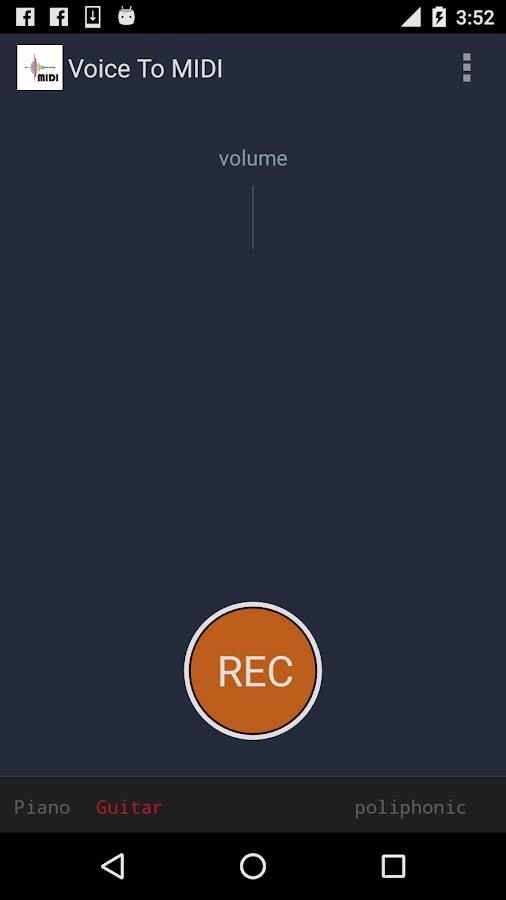 Приложение Voice Для MIDI преобразует любой аудио в MIDI. Пойте к микрофону устройства и приложение будет генерировать миди файл из voice.Can быть использованы в качестве голоса к Midi, гитары к Midi, пианино к миди или просто любой аудио в миди.
