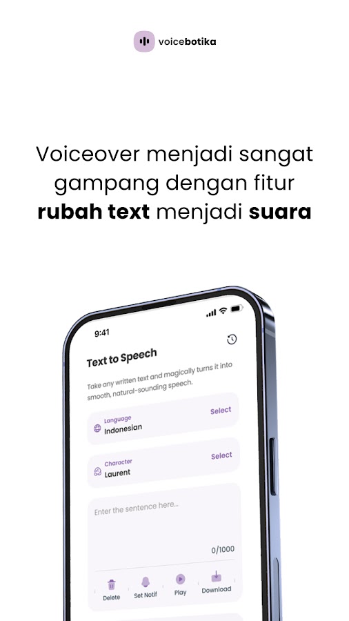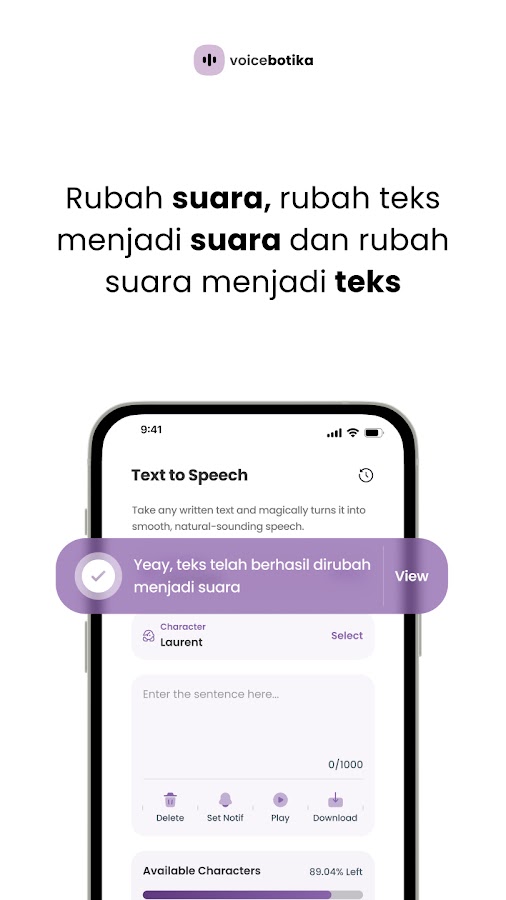 Voicebotika — это приложение, разработанное PT Botika Teknologi Indonesia, которое обеспечивает функции преобразования текста в речь (TTS) и речи в текст (STT) на индонезийском языке с естественным и четким голосом. Подходит для чтения электронных книг, документов, материалов электронного обучения, создания рингтонов WhatsApp, уведомлений, объявлений и озвучивания видеоконтента.
