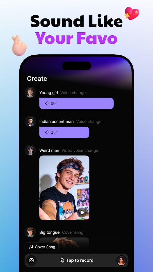 • Секретное преимущество создателя: сделайте свой контент незабываемым. Создавайте вирусные видео и подкасты с мгновенно узнаваемыми голосами персонажей, которые повысят количество репостов и вовлечённость.