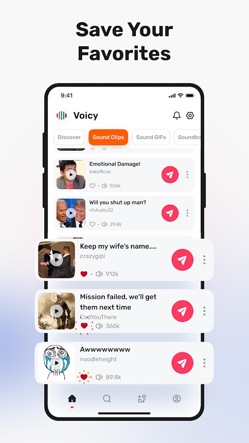 Просто случайный звук недостаточно забавен для вашего разговора или группового чата? Исследуйте нашу библиотеку звуковых GIF или создавайте их сами, комбинируя аудио с GIF! Будь то ваш любимый актер, ютубер или забавный стример Twitch, Voicy всегда готов рассмешить вас и ваших сверстников. Поверьте мне, они хотят знать, что скрывается за кнопкой воспроизведения!