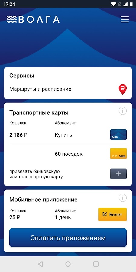 ВОЛГА — это автобусы на карте онлайн, быстрый способ пополнить баланс транспортной карты или оплатить проезд приложением, удобный помощник построения маршрута и просмотра расписания.