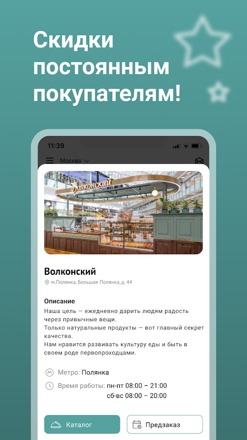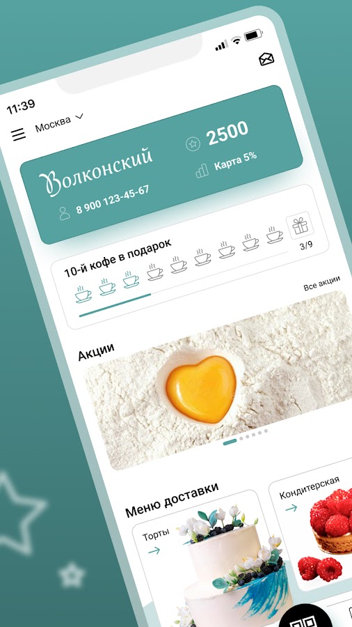 Волконский – сеть традиционных кафе-кондитерских с парижским акцентом. Закажите доставку нашей продукции на дом или в офис в нашем бесплатном мобильном приложении. Пару кликов и свежеиспеченный хлеб уже отправляется к Вам.