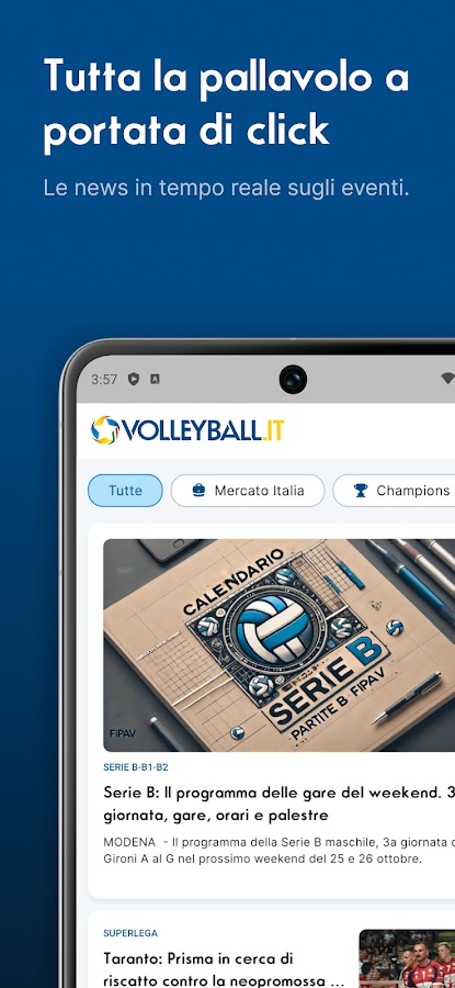 Приложение Volleyball.it+ переносит все новости, результаты и информацию, посвященную миру волейбола, прямо на ваш смартфон и планшет. Эксклюзивная точка отсчета для энтузиастов: контент обновляется в режиме реального времени и без перерывов на рекламу.