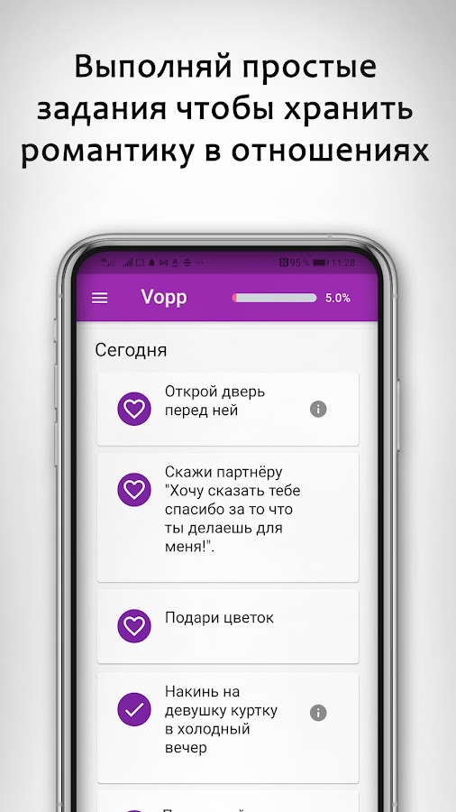 Скачайте приложение Вопросы и задания для пар VOPP для Android бесплатно - последняя версия (1.6.11) уже доступна для установки на ваш телефон или планшет.