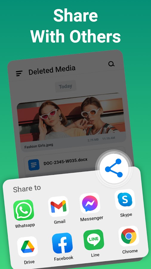 Мгновенно откройте для себя удаленные фотографии и восстановите текстовые сообщения из любимого приложения для обмена сообщениями. Загрузите сейчас и будьте уверены, что больше никогда не потеряете ни одно сообщение!