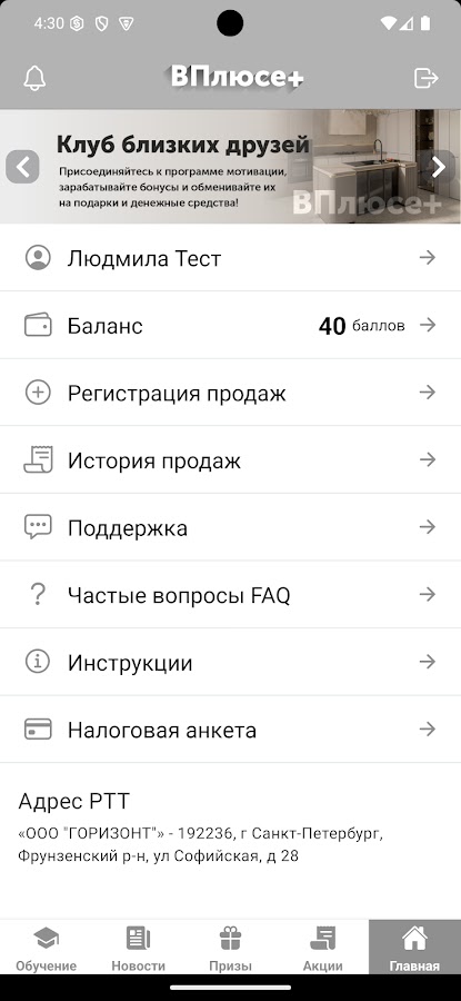 Программа мотивации с участием в акциях, регистрацией продаж, начислением бонусных баллов и их обменом на подарки и денежные средства.