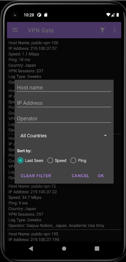 Это приложение позволяет находить и сортировать список серверов, доступных по протоколу OpenVPN TCP, OpenVPN UDP или SSTP.