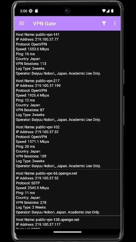 Это приложение позволяет находить и сортировать список серверов, доступных по протоколу OpenVPN TCP, OpenVPN UDP или SSTP.