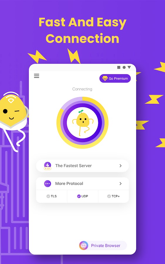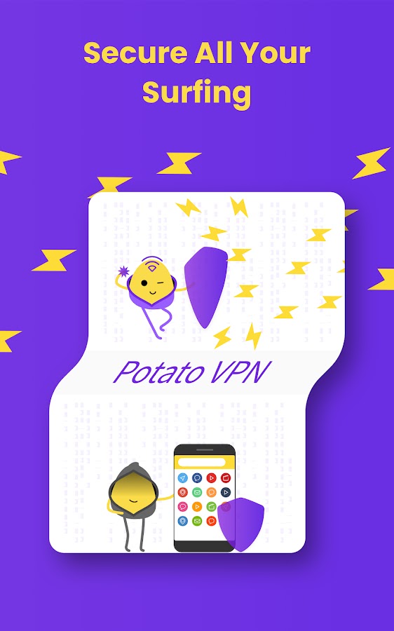 PotatoVPN защитит ваше Wi-Fi-подключение, сёрфинг и онлайн-активность. Защитите вас от слежки со стороны интернет-провайдера или кого-либо ещё. Вы можете легко изменить свой IP-адрес для обеспечения безопасности.