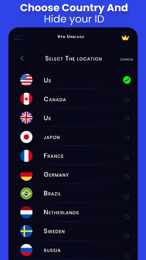 БЕСПЛАТНЫЙ VPN — лучший безлимитный VPN-прокси для Android. Шифруя ваш интернет-трафик, Super VPN защищает вашу конфиденциальность и позволяет вам безопасно и анонимно путешествовать по сети. вы больше никогда не будете связываться с запутанными меню настроек и опций, просто включите их один раз и забудьте об этом.