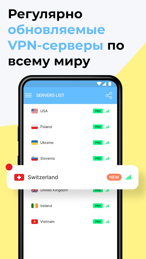 Больше всего серверов в Украине, но в приложении также есть серверы во всех ключевых локациях мира, например: Германия, Франция, Англия, Россия, США, Сингапур. В PRO версию добавлены все ключевые страны, а также более экзотические серверы, например: Малайзия, Турция, ЮАР, Бразилия, Испания и многие другие.