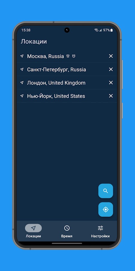 * Используйте функцию ручного поиска, чтобы проверить восход и закат солнца в любом месте на земле.