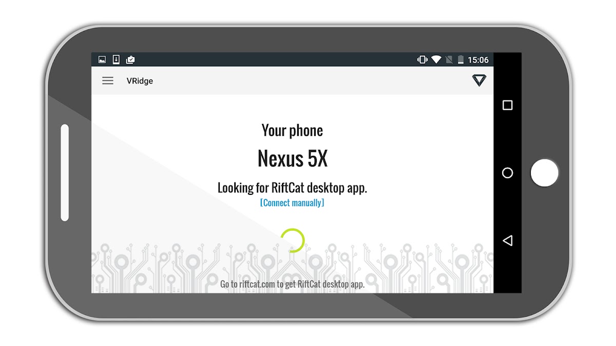 Это приложение позволяет технологии RiftCat в VRidge Классический на Android телефон. Преобразование телефон в мощный экран гарнитуры VR. Все, что вам нужно, это поместить его внутри headmount как Google картон и получать удовольствие.