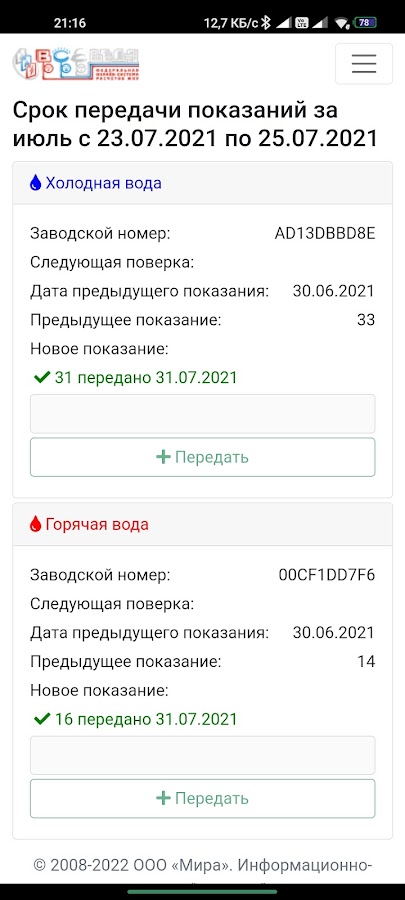 — передавать показания счётчиков;