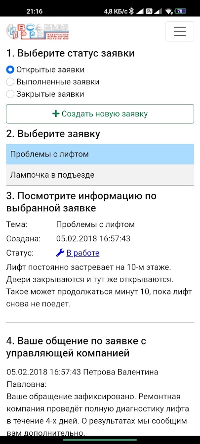 — создавать обращения в свою управляющую компанию;