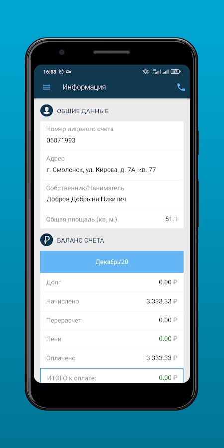 • Получить информацию по лицевому счету и актуальным начислениям
