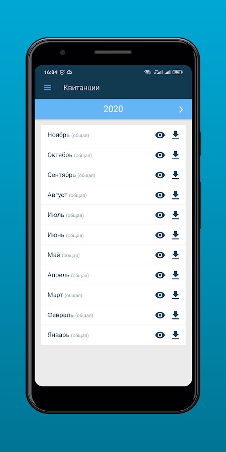 • Получить актуальную квитанцию, а также квитанции прошлых периодов с возможность сохранить квитанцию себе на устройство в формате .pdf