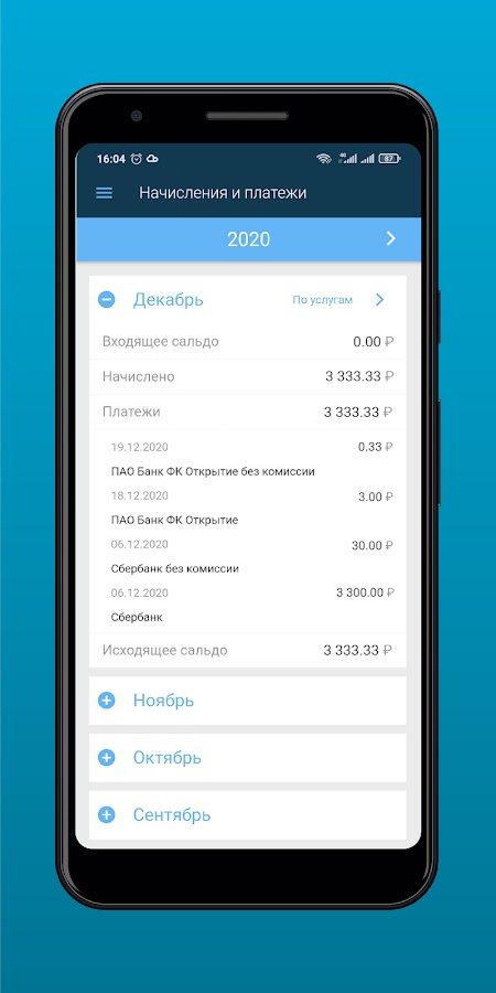• Посмотреть историю начислений и платежей ( даже с расшифровкой начислений по услугам за месяц )
