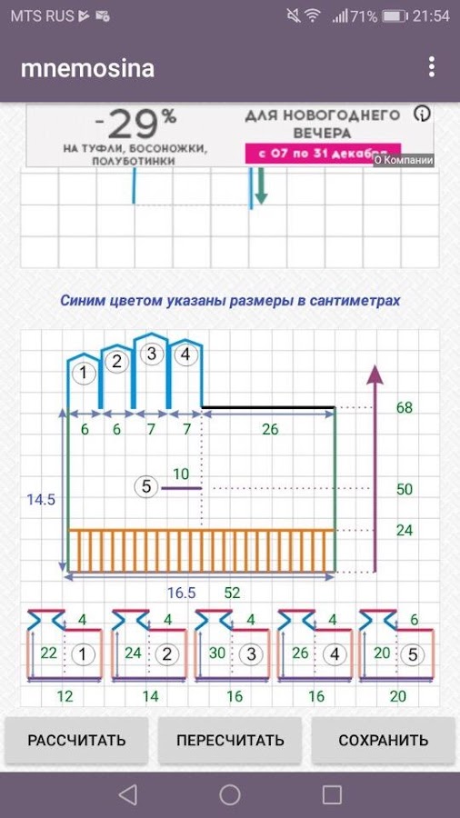 — сохранить расчет выкройки