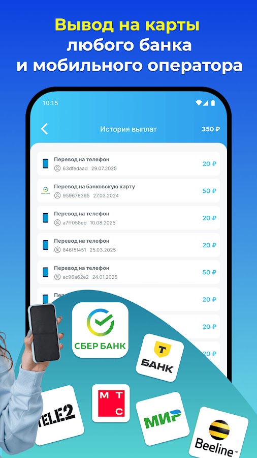 Погрузитесь в приложение для заработка — и станьте частью системы, где каждый может заработать деньги, зарабатывать деньги, работать онлайн, работать удаленно, работать на дому и получать деньги на карту — быстро, легко, честно.