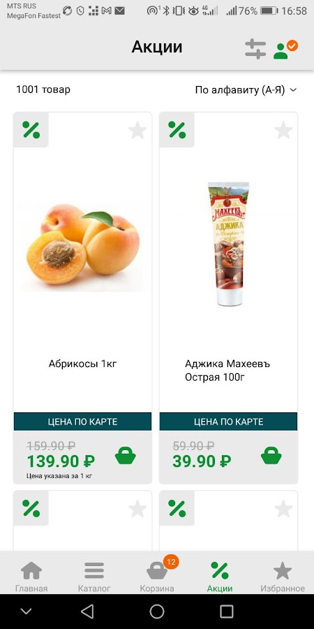 Кроме этого, в приложении «Высшая лига онлайн» изначально установлены цены ниже, чем в магазине на полке. Вы можете добавить свою дисконтную карту «Удача» или «Родина» и получить дополнительную скидку в нашем онлайн каталоге. Также мы регулярно устраиваем распродажи выходного дня. Все скидки и акции можно посмотреть в специальном разделе интернет-магазина продуктов приложения.