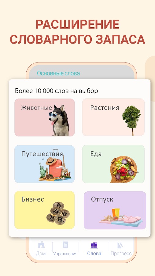 ► Отслеживайте свои успехи с помощью приложения. Вы можете следить за своим прогрессом и что самое главное в приложении есть уникальный словомер. Начните изучать и словомер замерит вашу скорость изучения, такого нет ни у кого!
