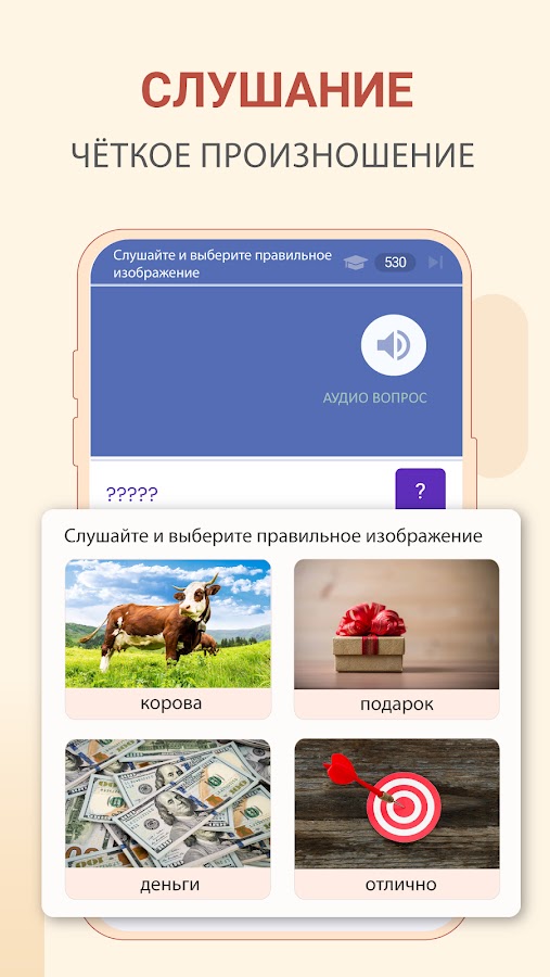 ► Адаптивное, скоростное и самое главное легкое обучение. Мы используем уникальную методику благодаря которой слова и фразы учатся сами.