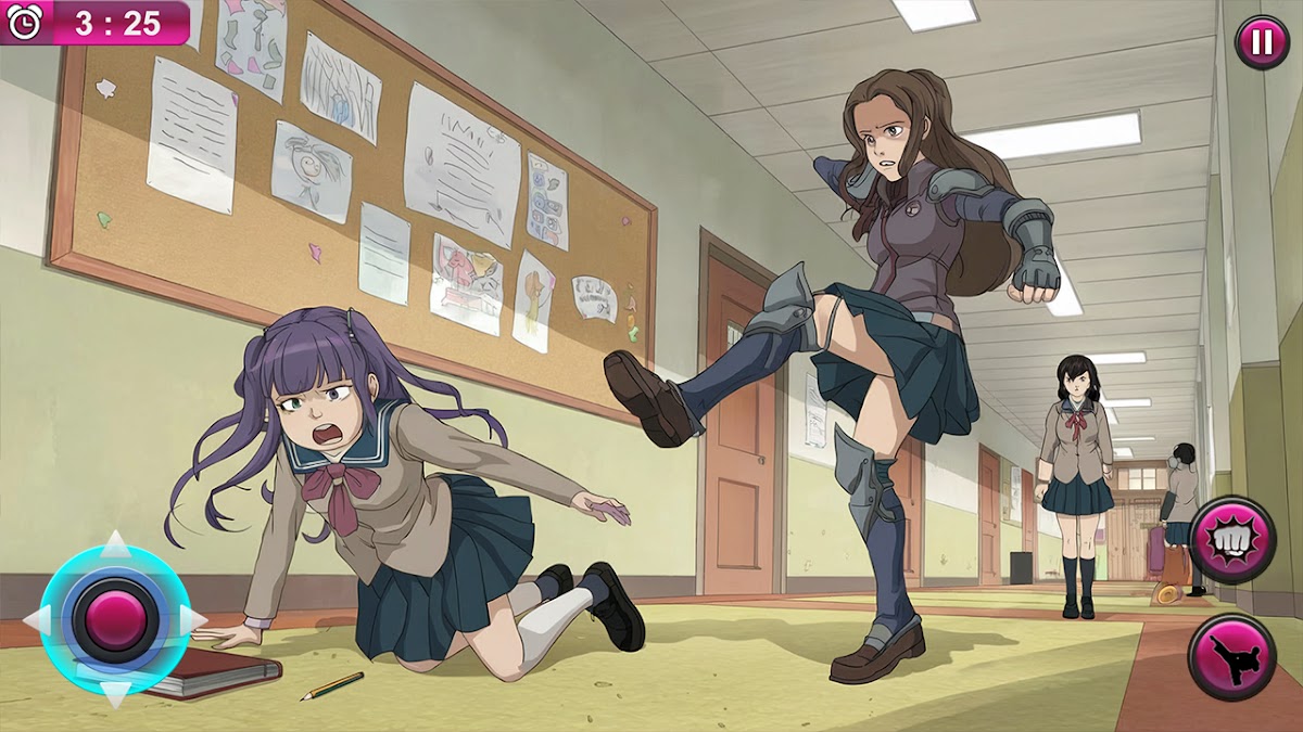 В этом полном действий школьном симуляторе наша отважная героиня должна проложить свой путь через среднюю школу, полную соперников. Помогите ей вырваться из лап своих противников в напряженных боях в стиле манги и выжить в этом захватывающем приключении! Пройдите каждый уровень, чтобы открыть новые испытания и испытать взлеты и падения виртуальной школьной жизни.