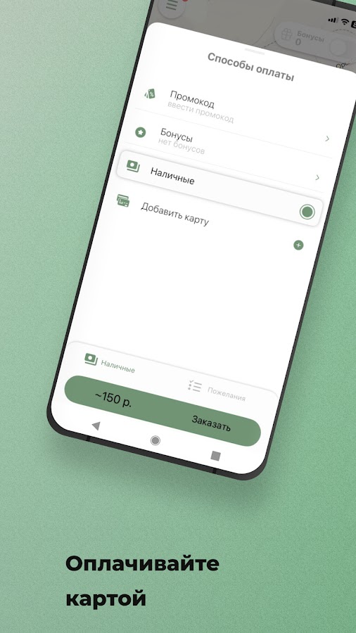 Оплачивайте поездки наличными, картой или накопленными бонусами.