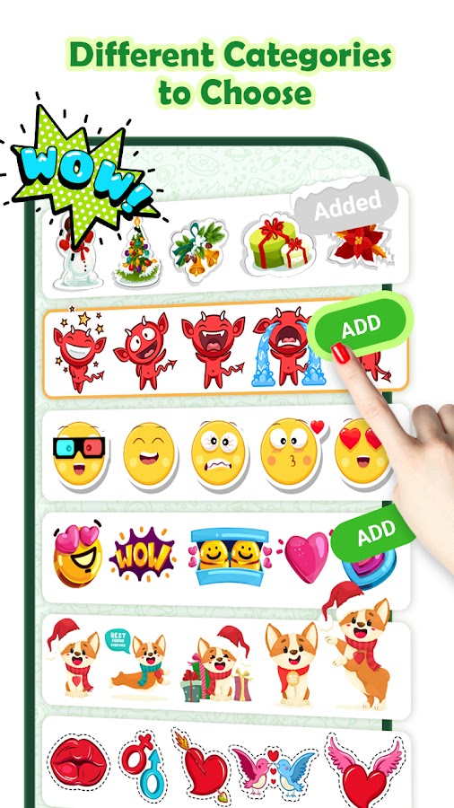 Есть много идеальных наклеек. Вы можете использовать наши забавные мемы, чтобы добавить веселья в свою жизнь. Жизнь всегда сопровождается счастьем и печалью. Вы также можете использовать наши смайлы, чтобы выразить все чувства своим друзьям в чате. Поскольку рейтинг содержимого некоторых из наших наборов стикеров — StickApps 18+, мы предоставляем вам множество любовных стикеров, в том числе популярные стикеры: стикеры для пар, стикеры с поцелуями, стикеры «Я люблю тебя» и так далее. Подготовлены не только эти ежедневные наклейки, но и некоторые специальные наклейки, такие как рождественские наклейки, наклейки на день рождения, мемы StickerApps и так далее. Более того, мы создаем милые наклейки с животными для любителей домашних животных.