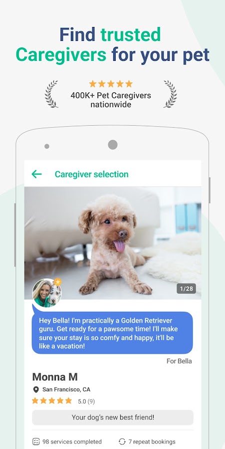• Делать родителей домашних животных счастливыми — это то, что мы делаем лучше всего — 99% Wag! услуги приводят к 5-звездочному обзору