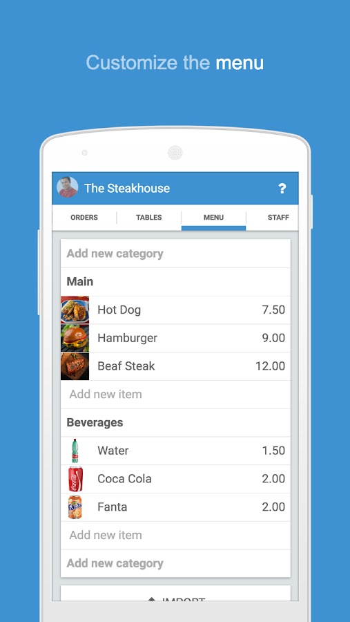 Waiterio это POS с самым дружелюбным интерфейсом. Для работы приложению не требуется большого количества настроек. Тратьте меньше времени на настройку POS и больше времени то, чтобы сделать ваш ресторан и меню очаровательными.
