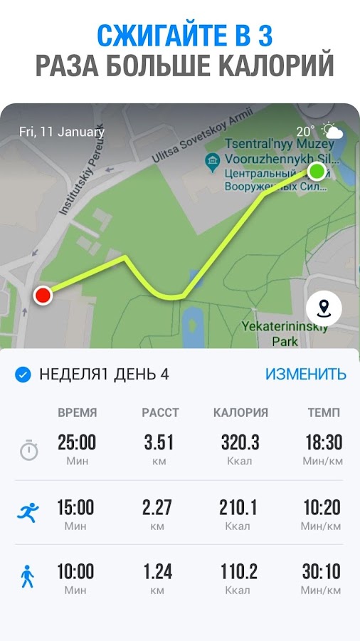 Лучший счетчик калорий, измеритель расстояния, таймер интервальной ходьбы и трекер физической активности – все эти функции приложения помогают сжигать калории, худеть и улучшать здоровье.