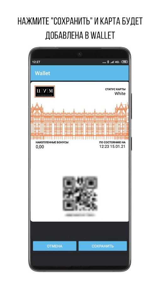ВНИМАНИЕ! Приложение Wallet не предназначено для сканирования штрихкодов с пластиковых карт лояльности и бумажных билетов.