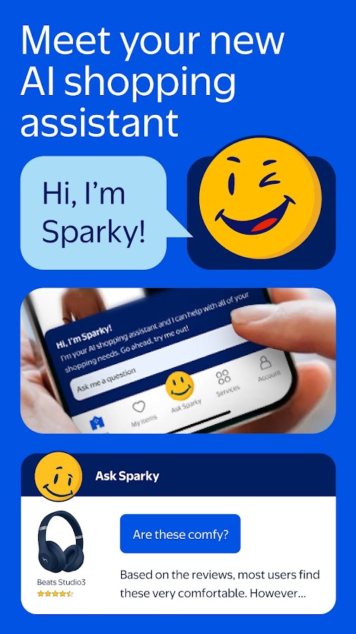Спарки упрощает жизнь. Спросите Спарки! Вы быстро получите ответы благодаря вопросам и ответам в режиме реального времени. Получайте сводки отзывов, которые помогут вам сделать лучший выбор. Устраиваете вечеринку? Расскажите Спарки. Получите помощь в покупке подарков на дни рождения, новоселья и многое другое.