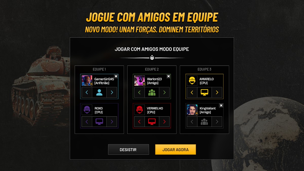 🏆 Рейтинг в многопользовательском режиме (онлайн): Вы лучший? Докажите это. Сражайтесь с генералами со всей Бразилии в случайных матчах и поднимайтесь в официальном рейтинге WAR. Каждая победа имеет значение!