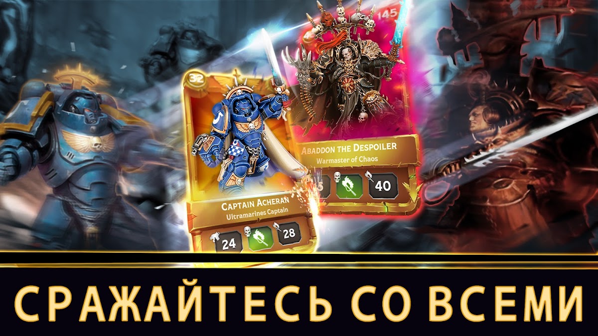 Во мраке далекого будущего существует лишь война! Разработайте стратегию, соберите колоду и поднимитесь на вершину таблицы лидеров Warhammer 40,000, побеждая в эпических карточных сражениях!