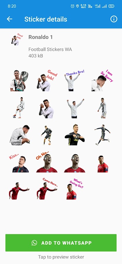 Выразите свои эмоции с помощью наборов наклеек футболистов и новых футбольных наклеек для WhatsApp и отправляйте лучшие стикеры WASticker App своим друзьям и семье.