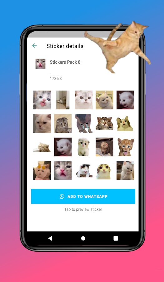 Собирайте самые смешные стикеры с кошками для WhatsApp, получайте самых милых кошек, множество стикеров с кошками, милых котят, известных кошек, смайлики, смайлики и многое другое!