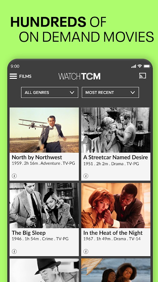СОТНИ ФИЛЬМОВ ПО ЗАПРОСУ: наша обширная библиотека ежемесячно пополняется новыми названиями, представленными специальными гостями и ведущими TCM, включая Бена Манкевича. Фильмы представлены НЕОБРЕЗАННЫМИ и БЕЗ РЕКЛАМЫ.