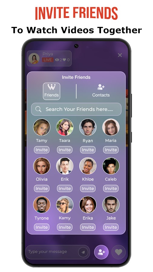 С помощью приложения Watch Together вы можете создать комнату для вечеринок, транслируя видео с любого веб-сайта в Интернете или прямо из видеогалереи вашего телефона. Смотрите с друзьями ваши любимые видео, фильмы, телепередачи, спортивные трансляции и многое другое.