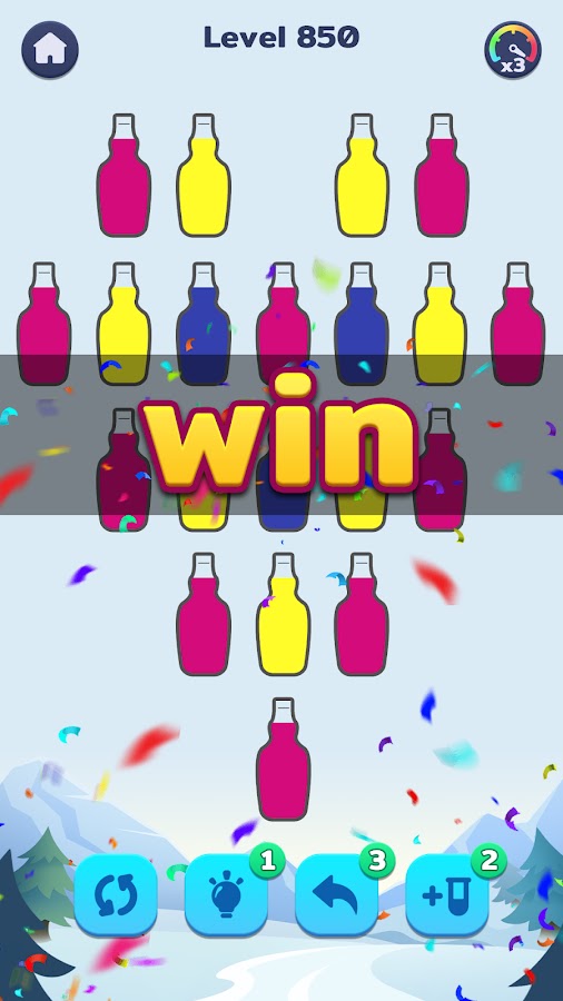 Разнообразные бутылочки и пробирки, яркие фоны и эффекты для выбора! Наслаждайтесь игрой сортировкой воды по своему темпу со скоростью 1х, 2х и 3х бесплатно! Сохранение прогресса позволяет играть в любом устройстве. Головоломка игра без интернета для улучшения внимательности и логического мышления!