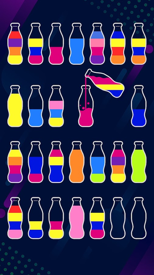 — Прохождение уровня заключается в том, чтобы каждая бутылка имела воду одного цвета.