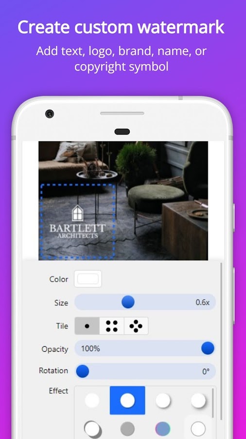 • Включить прямую или диагональную плитку, чтобы заполнить все изображение повторяющимися водяными знаками.