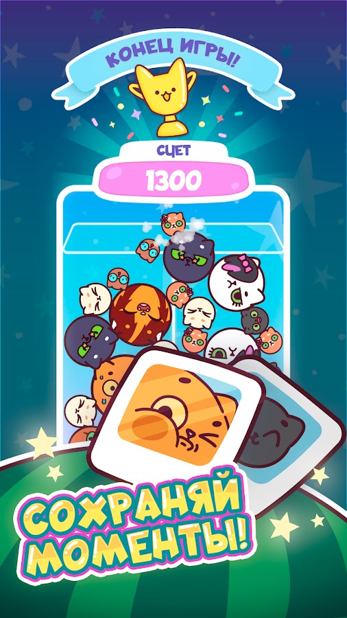 Соединяйте милых котиков, чтобы получить более крупных котиков и очки за них!