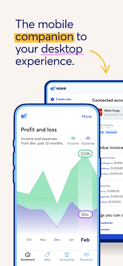 Для владельцев малого бизнеса, авторов, фрилансеров, консультантов и подрядчиков в США и Канаде мобильное приложение Wave станет идеальным дополнением к работе на настольном компьютере. Более 300 000 малых предприятий используют программное обеспечение Wave для малого бизнеса, так что вы знаете, что мы вас поддержим.
