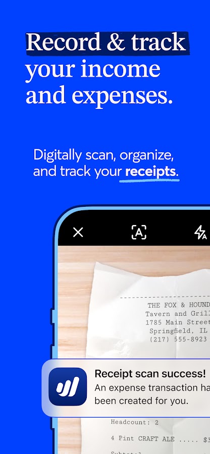 Наша функция мобильных квитанций включена в план Wave Pro или ее легко добавить к стартовому плану. Вы можете фиксировать неограниченное количество квитанций в цифровом виде с помощью оптического распознавания символов, чтобы отслеживать свои расходы.