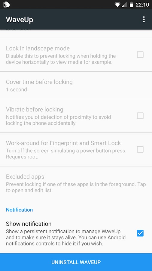 WaveUp разбудит ваш телефон — включит экран — когда вы помашете рукой над датчиком приближения.