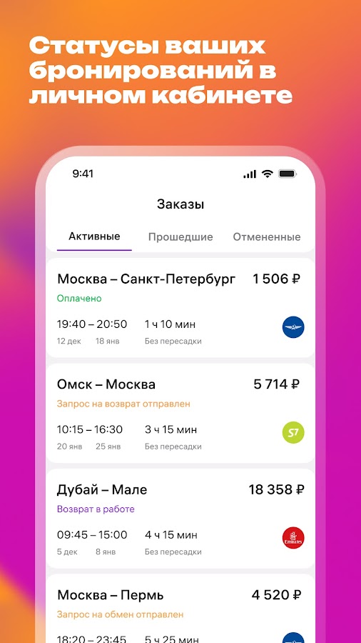 — Все оформленные бронирования доступны в разделе «Заказы», что позволяет отслеживать их статус в любое время