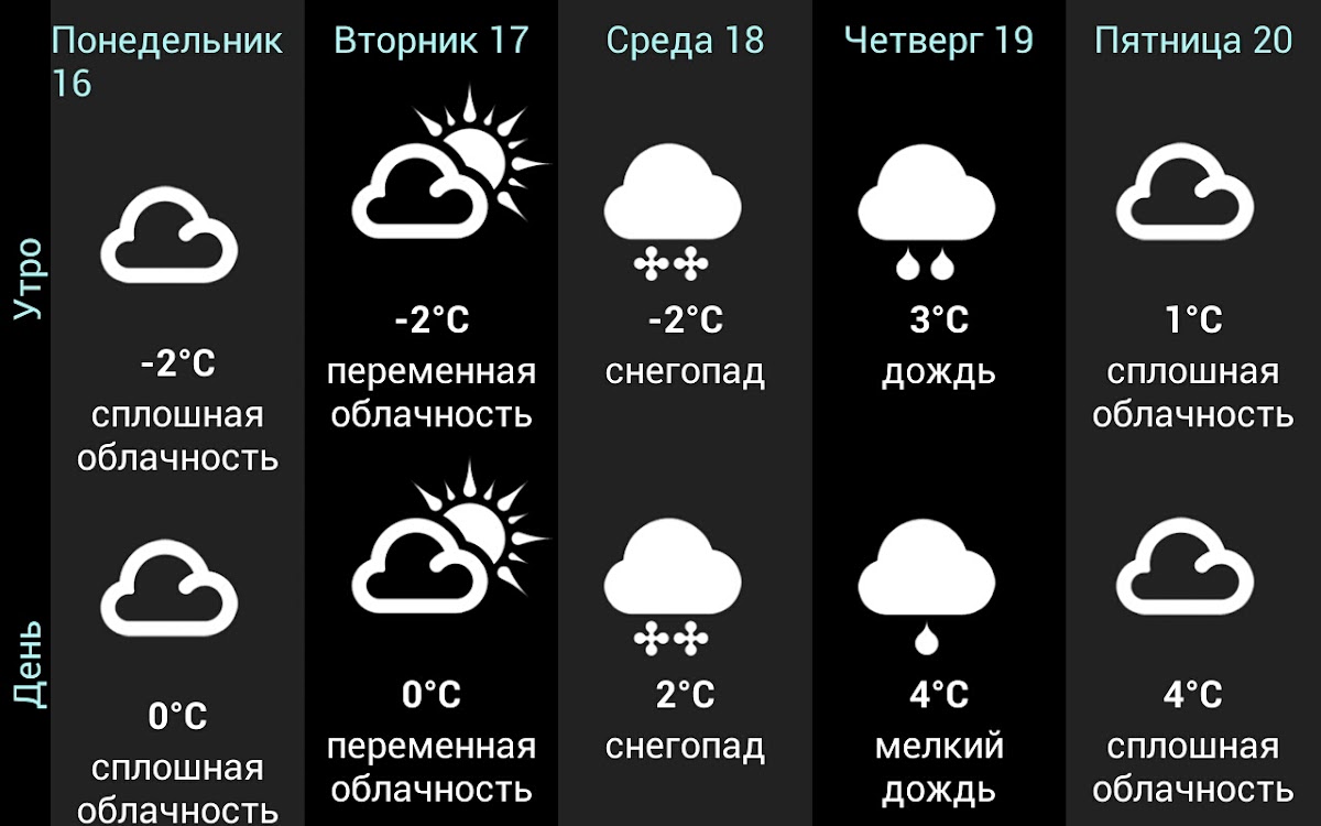 — Прогноз погоды на утро / день / вечер